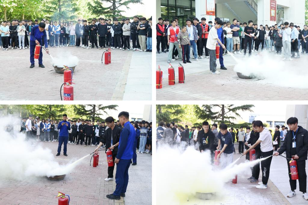 为进一步落实学校安全工作要求,提高师生应对突发火灾等危险的能力,5月8日下午,信息工程学院开展2023年春季消防安全应急演练活动,活动邀请了经开区消防救援大队消防员现场教学指导。学院全体教职工及在校学生共1000余人参加演练。 本次演练科目包含教学楼及宿舍楼逃生疏散演练、灭火器实战演练两项,以及消防车参观体验活动一项。 随着急促的警报声响起,演练正式开始。在第一项逃生疏散演练中,全体师生在疏散指导员的组织下,按照指定的安全出口和疏散路线,俯身、捂住口鼻、快速有序地从教学楼及公寓楼向安全地点疏散。整个疏散演练过程紧凑有序,没有丝毫的慌乱,达到了预期的效果。 在第二项灭火器实战演练中,消防员现场讲授了干粉灭火器的使用方法,并在演练场地点燃火盆,模拟真实的火灾场景,分批组织师生演练使用干粉灭火器扑灭初期火灾。 演练结束后,消防员向师生介绍了消防车的功能构造,以及高压喷射枪、泡沫喷射枪、空气呼吸器等专业用具的使用方法,同学兴致勃勃,积极主动的进行了参观体验。 此次活动,推动了信息工程学院消防安全教育的深入开展,提高了广大师生的安全意识和应对突发火灾事件的避险自救能力,增强了师生防灾减灾意识和方法能力,为创建平安校园提供了强有力的安全保障。