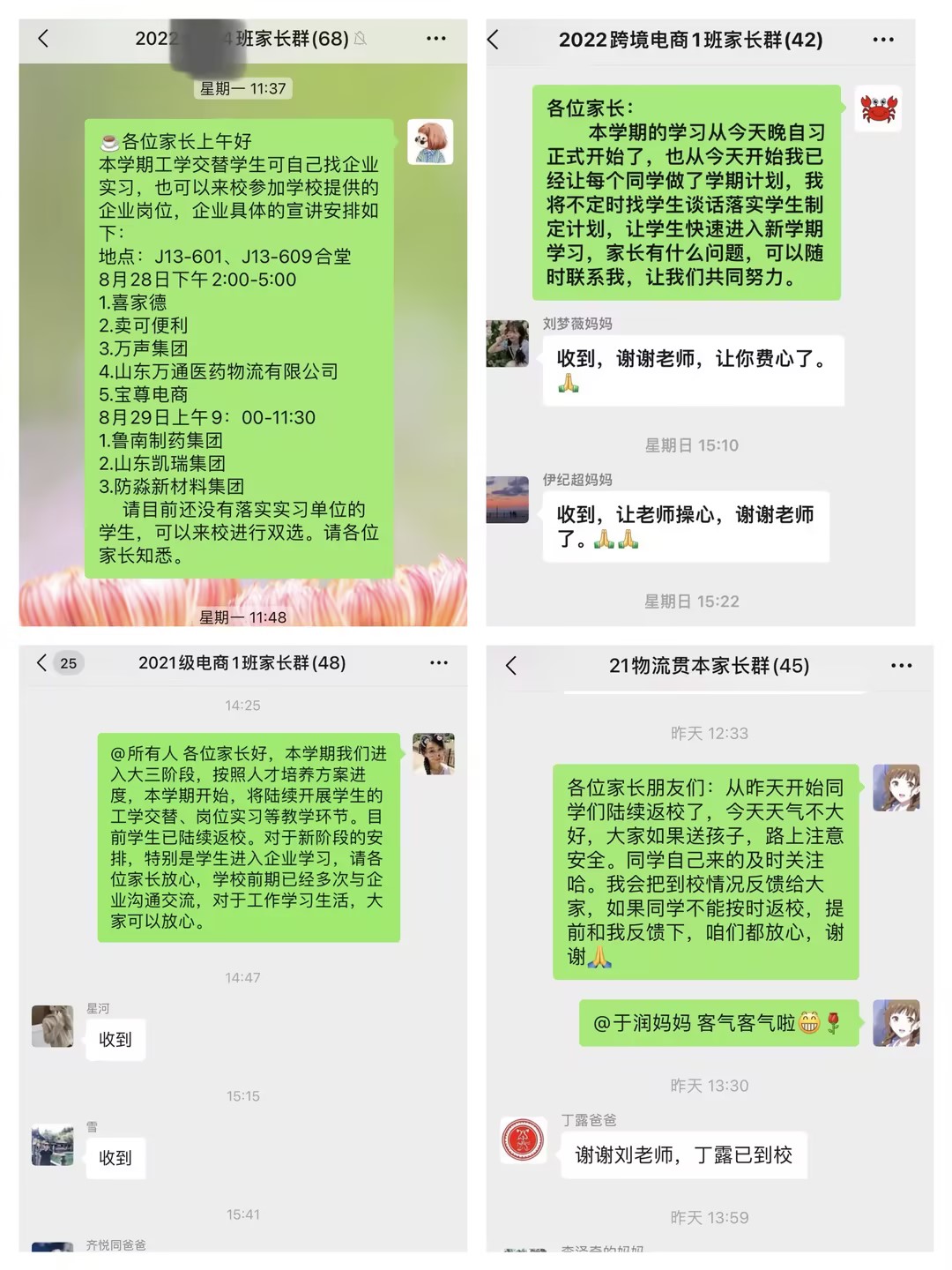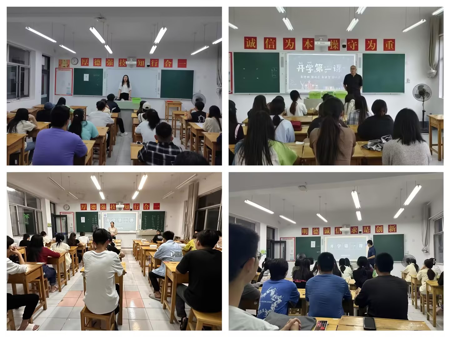 为进一步做好新学期学生管理工作,帮助返校学生及时适应校园生活和明确学习目标,近期,商贸物流学院开展了“开学第一课”主题班会。 各班班会通过观看主题教育短片、学习身边榜样事迹等方式,同学们进一步明确了新学期的奋斗目标和努力方向。会中,班主任鼓励同学们调适好心态,合理安排作息,制订适合自己的学习计划,尽快适应新学期的学习生活。同时学院建立家校协同联动机制,拓宽了学校与家庭之间的沟通渠道,拉近老师与家长间的情感距离,家长进一步了解了我院学生的教育管理工作,更详细地了解了孩子在学校的思想、学习和生活状况。 落实立德树人,实现培根铸魂,以“开学第一课”为切入点,我院将继续把握教育规律,凝心聚力,狠抓落实,全力以赴做好学生管理的各项服务工作。希望全体同学刻苦学习,砥砺奋斗,肩负起新时代青年的历史使命和时代责任。