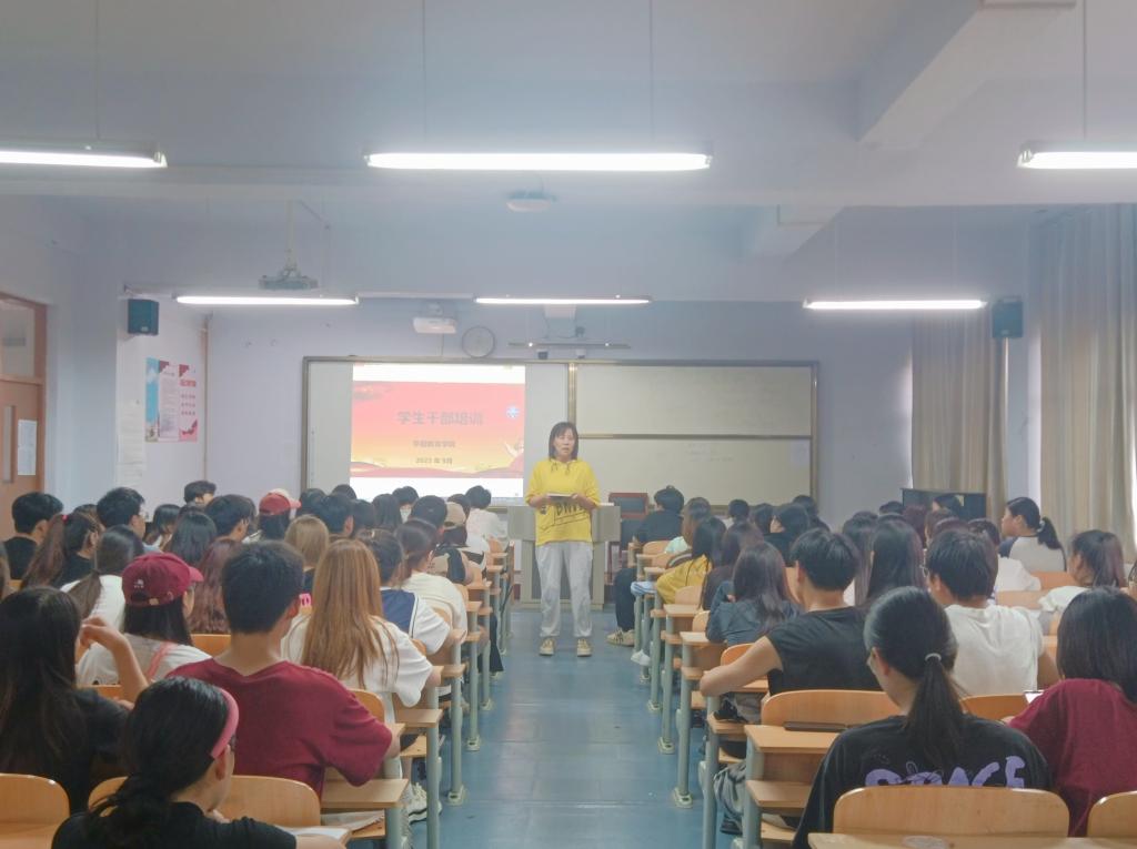 为帮助学生干部成长成才,强化学生干部队伍管理,学前教育学院于9月19日在A02-T201开展学生干部培训活动。我院全体学生干部参加此次培训。 此次培训由我院团学中心负责人翟文娜、团总支书记张文娜主讲。翟文娜结合我院学生干部日常工作情况,进行了工作总结,并提出整改意见。她指出,学生干部是学生群体的榜样,必须发挥模范带头作用,严格要求自己;要遵纪守法,遵守学校各项规章制度,树立大局意识和集体意识,坚决维护学校的形象、声誉。 张文娜结合我院工作实际,具体讲解了学生干部的职责。她指出,学生干部既要独立思考,也要加强沟通合作,形成部门合力,扎扎实实完成工作任务,树立我院学生干部队伍的良好形象。她强调,学生干部要妥善处理学习、工作和生活的关系,做到三者相互平衡、相互促进,收获一段充实快乐的校园时光。 在新学期启航之际,学前教育学院通过学生干部培训活动,为青春赋能量,为发展聚合力,为提升我院学生干部的素养与能力奠定了良好的基础。