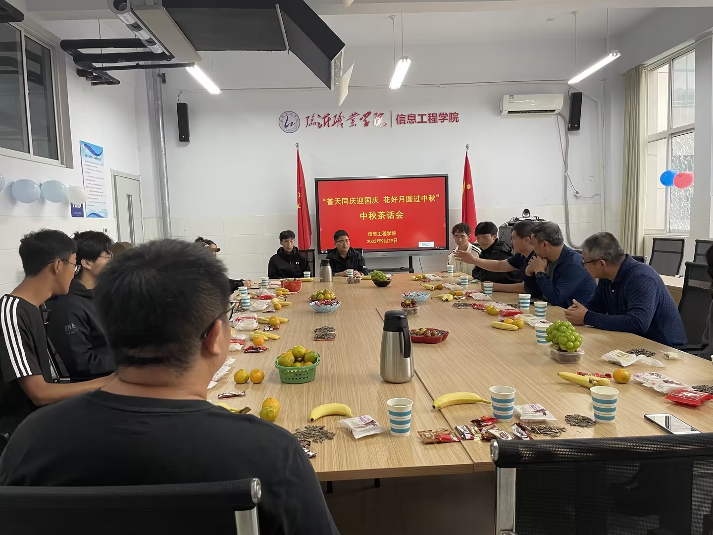 海上生明月,天涯共此时。在中秋佳节到来之际,为让留校学生度过一个温暖祥和的节日,9月29日,信息工程学院在三楼会议室召开留校学生茶话会。学校党委委员、工会主席、党委办公室(院长办公室)主任王茂坤出席活动。 茶话会上,同学们依次作了自我介绍,外省同学分享了入校以来的感想,并围绕校园学习生活、家乡文化习俗等方面畅谈感想体会。 王茂坤为同学们送上了深切的节日问候和真挚祝福,并对学生的日常学习生活进行仔细询问,希望同学们努力学习、增强本领,积极培养广泛的兴趣爱好,加强体育运动,促进德智体美劳全面发展;师生在会上共话各自家乡的中秋习俗以及假期的奇闻趣事等,现场充满了欢声笑语。 此次中秋茶话会的成功举办,不仅为留校学生送去了温暖和关爱,也为他们提供了互相交流、互相学习的平台,祝愿所有同学和家人中秋节团圆快乐,幸福安康!