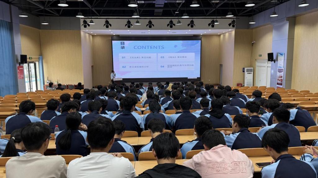 讲座内容紧贴校园生活实际。主讲律师围绕《民法典》《刑法》常见问题,分析了与学生有关的侵权维权问题,短视频的机遇与法律风险防控。讲解内容详实,案例生动,有效增强了新生的法律认知边界与底线思维。