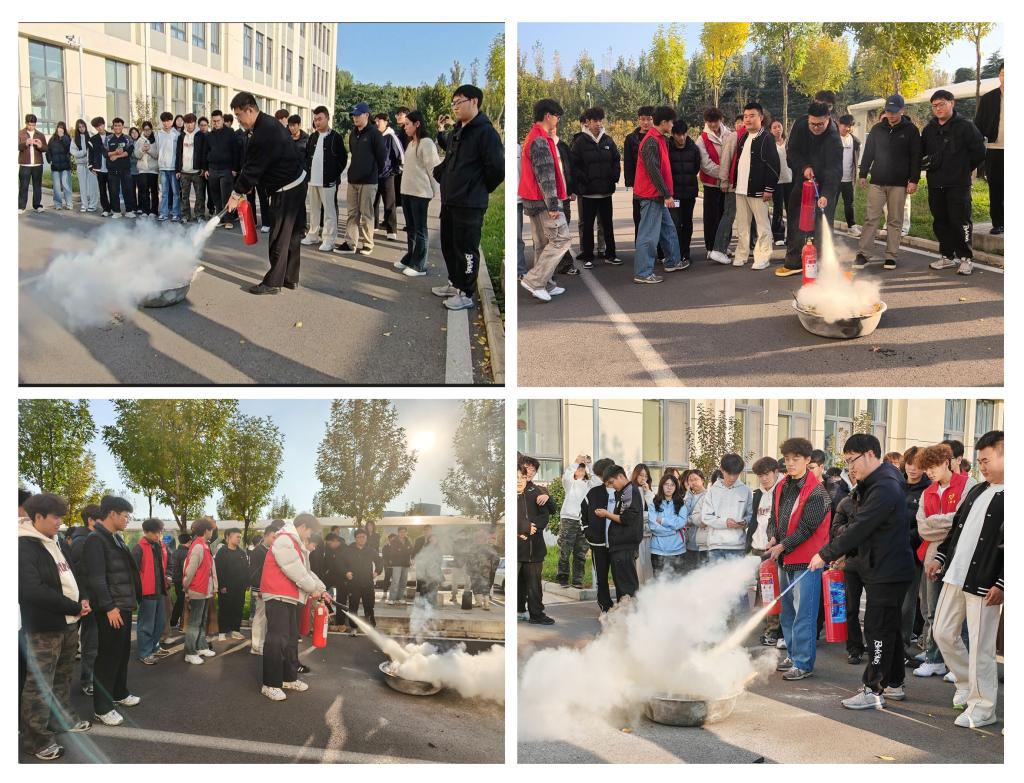 随着消防警报响起,应急疏散演练立即启动。师生们迅速反应,沿预定路线有序撤离至安全区域。并在灭火实操环节,师生轮番上阵,使用灭火器扑灭明火,训练掌握初期的火灾应对技能。