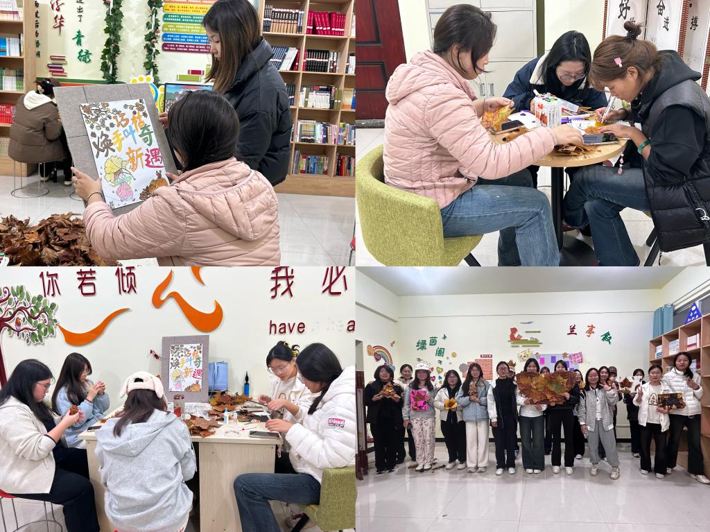 为丰富校园文化生活,提升学生综合素养,近日,医养健康学院组织学生开展"拾叶绘秋,巧手文韵"秋日主题系列活动。活动通过落叶题诗、手工创作、集体拼贴等形式,让学生在感受秋日美景的同时提升实践能力。 “落叶题诗”环节,同学们在完整落叶上题写秋日诗句,将自然素材与文学创作相结合。活动既加深了学生对季节文化的理解,也提升了他们的审美素养和文学修养。 “巧手焕新”手工活动引导学生利用落叶、废旧纸板等材料制作书签、装饰画等作品。通过将废弃材料转化为艺术品,学生在实践中培养了创新意识和环保理念。 “拾叶成图”集体拼贴活动以小组协作形式开展,同学们将落叶拼贴成各类图案。这项活动不仅美化了校园环境,更增强了学生的团队协作能力和集体荣誉感。 本次系列活动将美育、劳育与环保教育有机结合,通过寓教于乐的方式提升了学生的综合素质。学院将持续开展特色校园文化活动,为学生全面发展营造良好环境。