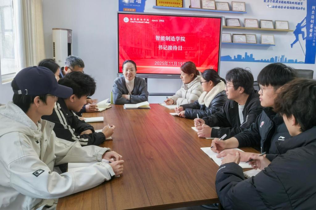 11月19日,智能制造学院在S01-211会议室开展“书记接待日”活动,学院党总支书记及相关负责同志参与。 座谈会上,学生代表围绕自身学习生活积极提问,聚焦专业课程学习、实训操作情况及宿舍生活等关键问题。针对学生提出的问题,党总支书记及相关负责老师认真倾听、详细记录,逐一进行耐心回应与细致解答,对能现场解决的问题立即整改,对需协调推进的事项详细记录并明确责任部门与整改时限。 此次活动为师生搭建起沟通的桥梁,切实让学生感受到学院的关怀,增强了学生的认同感与归属感。