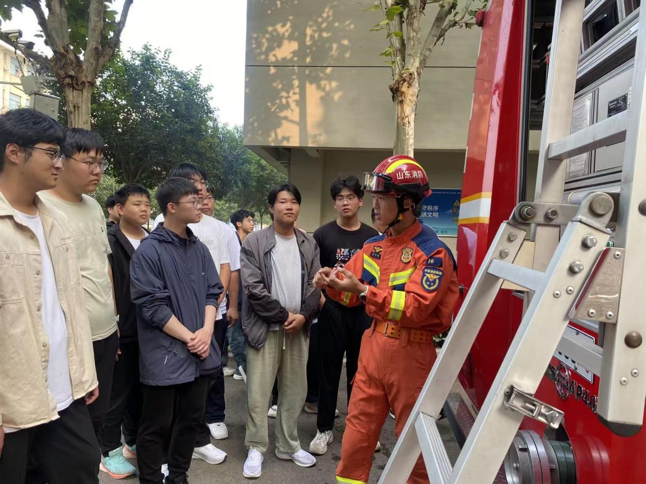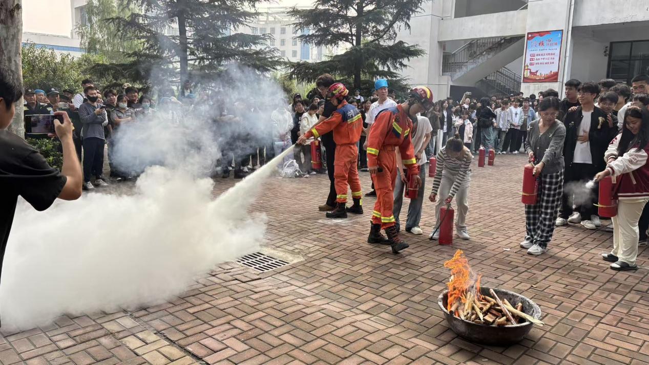 为进一步增强师生消防安全意识,提升应急自救能力,9月29日,数字媒体与艺术学院联合沂河新区消防救援大队组织开展消防安全演练活动。 随着消防警报响起,应急疏散演练立即启动。师生们迅速反应,沿预定路线有序撤离至安全区域。 在灭火实操环节,消防官兵现场讲解演示了灭火器的正确使用方法。师生轮番上阵,按照“提、拔、握、压”的步骤成功扑灭明火,掌握了初期火灾应对技能。 演练还设置了消防装备体验环节。师生们近距离参观消防车辆,了解高压水枪、破拆工具等功能,加深了对消防工具知识的理解。 此次消防演练活动的顺利开展,有效提升了学生的消防安全素养与应急处置水平,为构建平安和谐校园奠定坚实基础,也为新生更快适应校园安全生活提供有力保障。