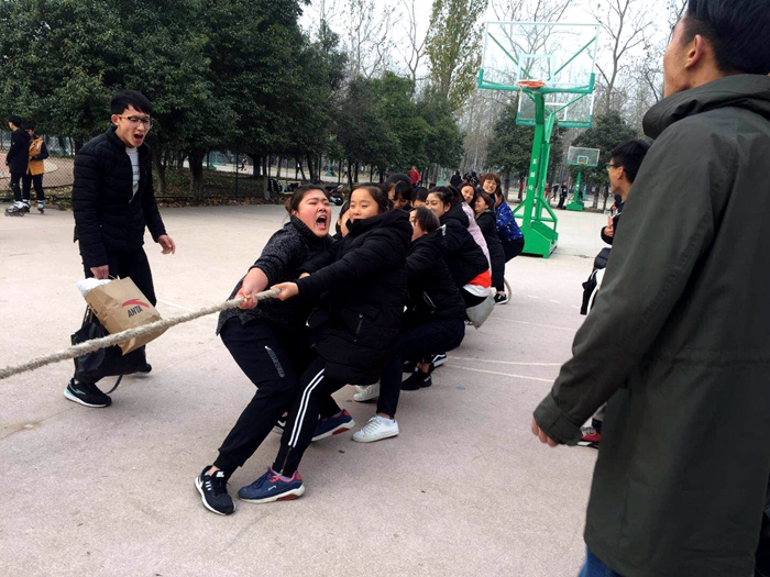 2017年11月14日—11月21日,现代服务学院全体17级新生在校篮球场举行了本年度首次拔河比赛。本次大赛以促进各年级、班级间交流为宗旨,丰富同学们的校园生活为目的,以比赛的形式为学生们带给展现群众风采的舞台,透过拔河比赛发扬团队精神,增强凝聚力。全体同学纷纷以极大的热情参与到此次活动中。 11月21日,在柔和的斜阳中,同学们个个斗志昂扬,充满了青春热情。无论是跃跃欲试的参赛者,还是观赛的同学和加油的啦啦队,都十分期盼着最后的决赛。最后在一切准备就绪后,比赛开始了,随着一声哨响,两个班级所有参赛队员使尽全力,周围助威的呐喊声震耳欲聋,双方在经过数十秒的战斗后,伴着再一声口哨响起,赛场上随即响起了一片胜利的欢呼声。经过激烈的角力,17体育舞蹈一班、17旅游管理一班、17空中乘务一班分获一二三名。 同学们始终秉承着友谊第一,比赛第二的理念,在此次比赛过程中同学们不仅仅对彼此进一步加深了了解,更增进了彼此之间的友谊。另外,各班群众凝聚力也在此次的拔河比赛中得到了空前提升。