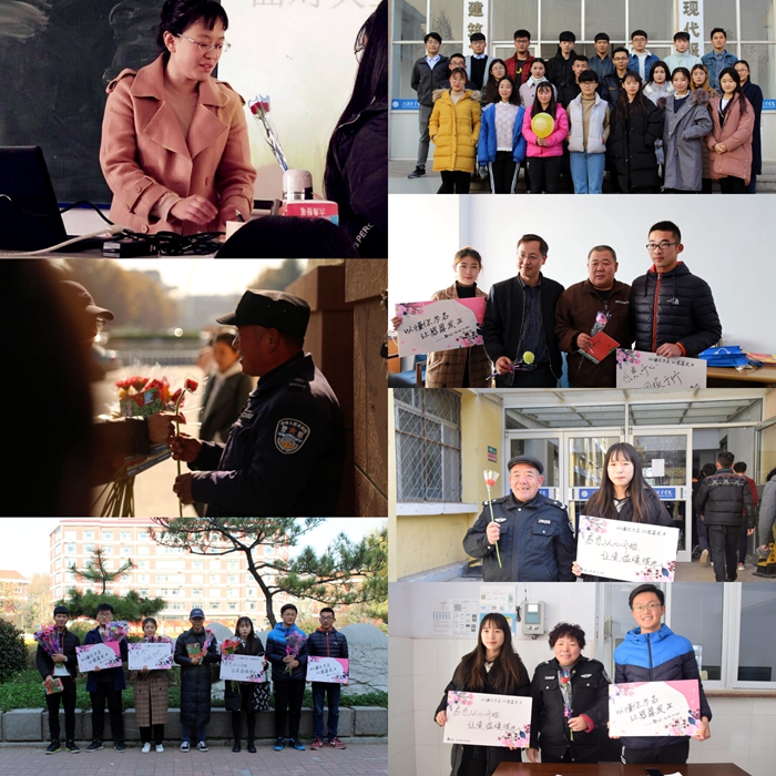 11月23日,校园之声广播站举办了“以懂你之名,让感恩发生”为主题的感恩活动。 广播站全体同学在社长的带领下,分工有序,准备周密。一朵朵象征着感恩祝福的康乃馨在同学生们的用心装饰下焕发了更加蓬勃的生机,一张张平凡的贺卡在同学们的细心书写中变得尤为珍贵。 带着象征感恩和祝福的花朵、卡片,同学们走向教室,为三尺讲台的教师送上虔诚的祝福;走进办公楼,为伏案工作的老师们送上最诚挚的问候;走进食堂、公寓,为默默奋斗在一线的后勤工作者们送上最真诚的感谢。 感恩有时是最简单不过的事,一个微笑,一声谢谢,都将使我们的生活充满温暖和善意。