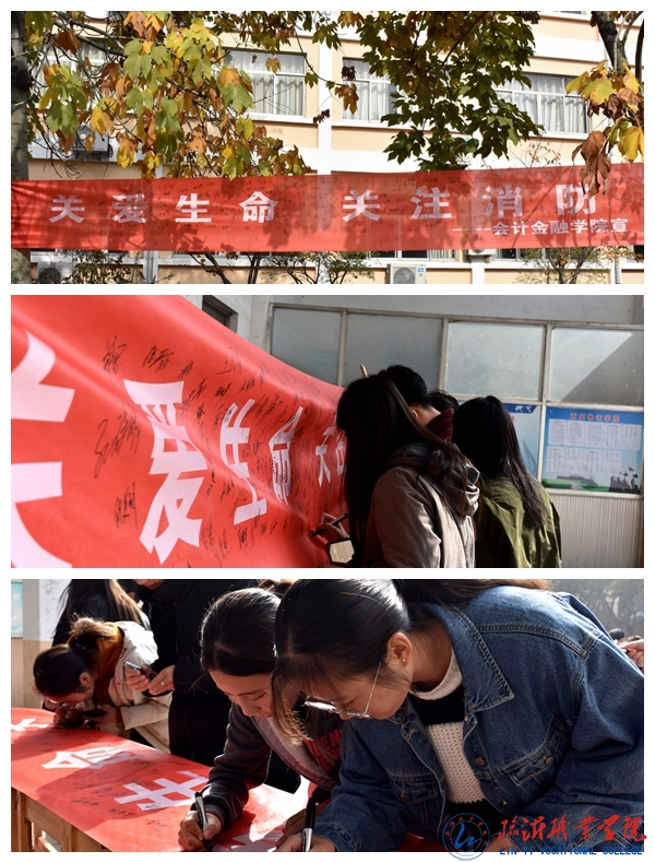 为提高广大同学的安全防范意识,营造安全、稳定、和谐的校园环境,在全国“消防宣传日”来临之际,会计金融学院开展“关注消防 关爱生命”消防安全主题系列活动。 11月8日,学院组织全体班级开展“关注消防 关爱生命”主题班会活动,从火灾发生原因、火灾发生初期应对措施以及消防器材正确使用等方面对消防案例进行分析,大大提高了全体同学的消防安全意识;通过对宿舍、教室等场所用电规范的讲解,进一步提高全体同学的安全用电、规范用电意识。 11月9日,学院组织同学们在系楼前开展“关注消防 关爱生命”消防安全主题签名活动,加强广大同学对消防安全的认识与重视,关注消防、注重安全,从我做起,从现在做起。 此次活动,在为广大同学普及消防安全知识的同时,提高了消防技能,增强了消防意识,为营造安全舒适的学习、生活环境,构建和谐校园产生良好了作用。