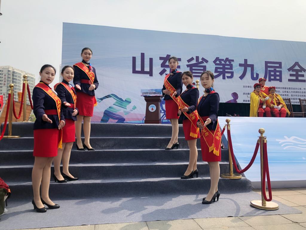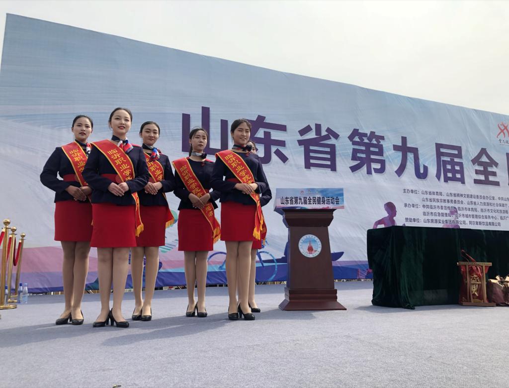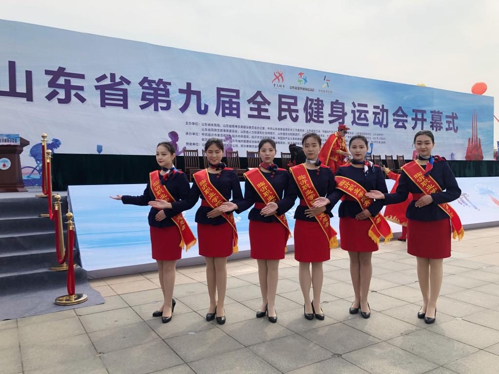 4月13日,山东省第九届全民健身运动会开幕式在临沂举行。副省长孙继业宣布开幕,省政府办公厅二级巡视员张连三、市委书记王玉君等出席开幕式。 在这个隆重的体育盛会中,我院承担了礼仪志愿者的相关工作。经过选拔,来自现代服务学院航空服务专业的许静如等六名同学综合表现优秀,代表学院参加了开幕式的礼仪志愿工作。 开幕前夕,六名同学按照开幕式议程,就迎宾、引导、答疑等工作的内容、线路和注意事项进行了全天候的彩排和训练。开幕式当天,提前到达活动现场,进入工作状态,充分体现了我院学生优良的职业素养和任劳任怨、勇于奉献的志愿服务精神,获得了与会领导和现场市民的一致称赞。 据悉,山东省全民健身运动会从2011年开始举办,以全民动员、全民参与、全民健康、全民共享我宗旨,设大众竞技、万人系列、职业技能、社会化办赛四个版块54个项目59项比赛,将于今年10月份结束。