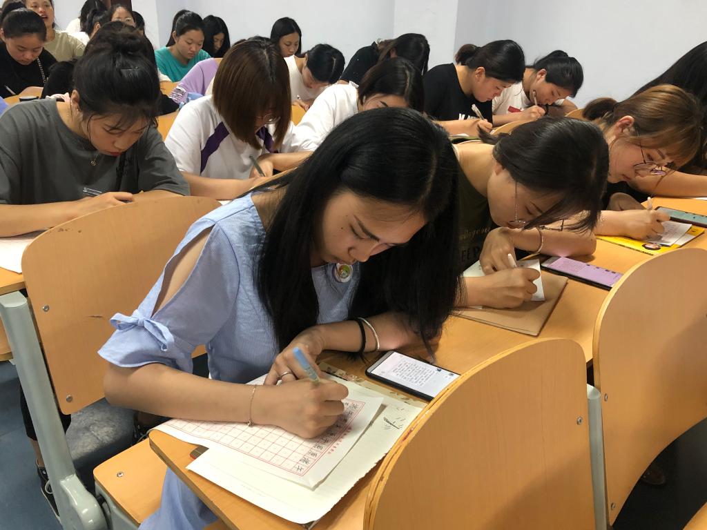 为了规范同学们的书写行为,提高同学们的教师硬笔书法水平,增强同学们对中华汉字文化的了解,现代服务学院利用晚自习时间在2018级各班举行硬笔书法比赛活动。 6月4日晚自习,进行了硬笔书法比赛的初赛。18级早期教育专业的全体同学积极参与到本次活动,比赛中同学们满怀激情,用心书写每一笔笔画、每一个汉字,尽其所能地展示自身书法的才能。作品中无不透着或规范、或严谨、或灵动的气质。他们认真、严谨的态度为我们做出了榜样,成绩的背后付出的是辛勤的汗水。初赛活动中挑选出较好的作品后,同学们将为下周的决赛做好准备。 6月11号晚自习,评委们从各班初赛作品中挑选出了十九名同学,参与到此次硬笔书法决赛当中去。赛场上,同学们端正的坐姿,优雅的握笔姿势,一行行潇洒飘逸的汉字精灵,一句句关于端午节由来的历史资料等走进了特制的方格里。每日的书法训练带给同学们的是满满的自信。一笔一画写好字,坚持每天的硬笔书法练习,传承华夏经典。 此次硬笔书法比赛的开展,增强了学生们对祖国语言文字的热爱,进一步弘扬了中华传统文化,提高乐学生的综合素质,培养了学生们热爱中国文字,传承中国传统文化的意识,以写字来育人,形成了良好的校园文化。